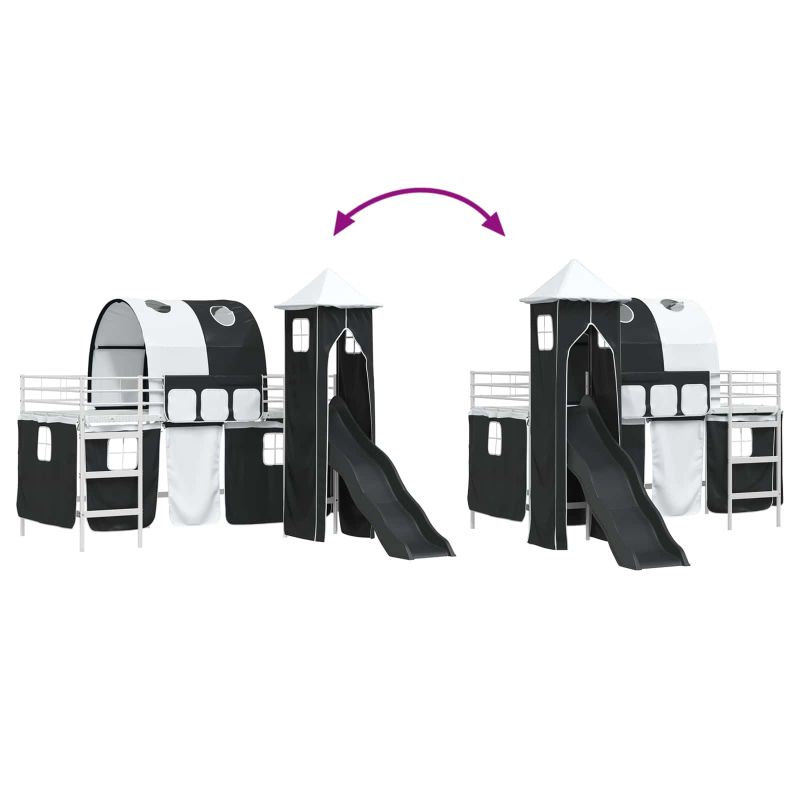 Тази модерна рамка за легло с пердета, арка, пързалка и кула е вълнуващо и практично решение за детски стаи. Стилният дизайн я прави акцент в помещението. С кула и пързалка, времето за лягане става забавно. Отличният дизайн оптимизира пространството, отговаряйки на нуждите на детето с функции, които вдъхновяват въображението. Перфекният микс от красота и практичност я прави идеална за игриви детски стаи. Здрав метален каркас: Изработено от здрав метал, това легло е дълготрайно и поддържа енергични деца. Металната рамка с матово покритие прекрасно вписва в декорите на детските стаи. Проектирано за безопасност и стабилност, устоява на ежедневни приключения. Вълнуваща пързалка и кула: Децата ще обожават вградената пързалка и кула, които превръщат стаите им в игрални площадки. Компонентите насърчават играта и креативността, създавайки приключенска зона за забавление и учене. Функционални завеси за уединение: Леглото идва с ръчно управлявани завеси, които добавят интрига, дарявайки необходимо уединение. Арката прикрива местата на монтажа, за по-добър визуален изглед. Матово покритие: Матово боядисаната рамка на леглото изглежда елегантно, отблъсквайки пръстови отпечатъци и прах. Изчистеният вид лесно се съчетава със съвременни интериори, изискващи минимална поддръжка. Инструкции за поддръжка: Почистването е просто - нужна е само влажна кърпа. Препоръчва се да следвате инструкциите на производителя за сглобяване, така леглото ще служи дълго.
