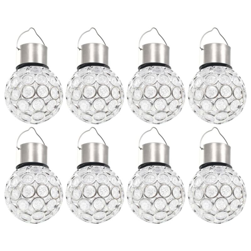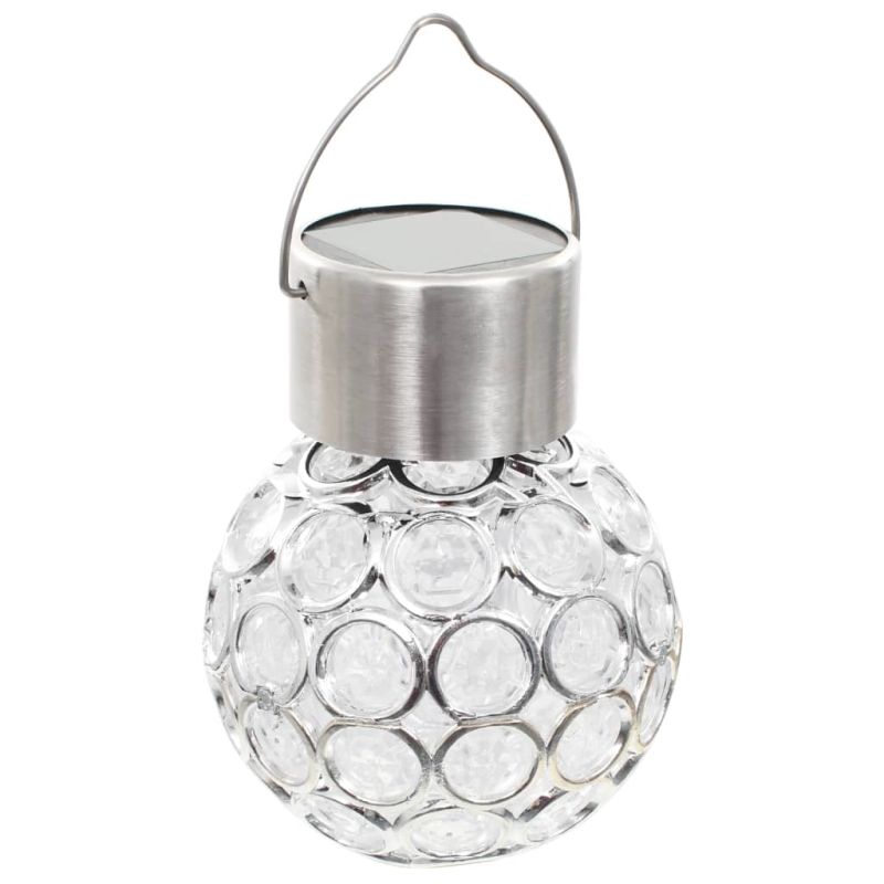 Тези висящи соларни лампи са перфектни декоративни осветители за къщи, градини, вътрешни дворове, пътеки и балкони. Всяка соларна лампа е оборудвана с Ni-MH батерия, зареждана от слънчевата светлина. През деня лампите автоматично абсорбират слънчевата енергия и я преобразуват в електричество за зареждане на батерията. Във всяка лампа има по един LED светодиод, който излъчва цветна светлина вечер. Светлината ще се включи автоматично, когато се стъмни и ще се изключи през деня. Нашите соларни лампи имат красив кристален външен вид, които също са енергоспестяващи и изискват малко поддръжка. Не е необходимо да плащате сметка за електричество за лампата, тъй като тя се захранва от слънчева енергия. Соларните лампи са проектирани да бъдат водоустойчиви и подходящи за ежедневна употреба на открито. Всички елементи са лесни за сглобяване. Доставката включва 8 соларни лампи.