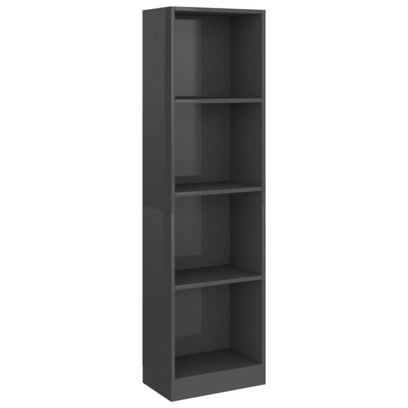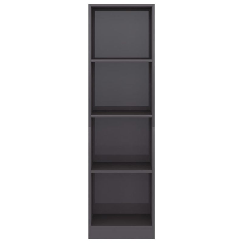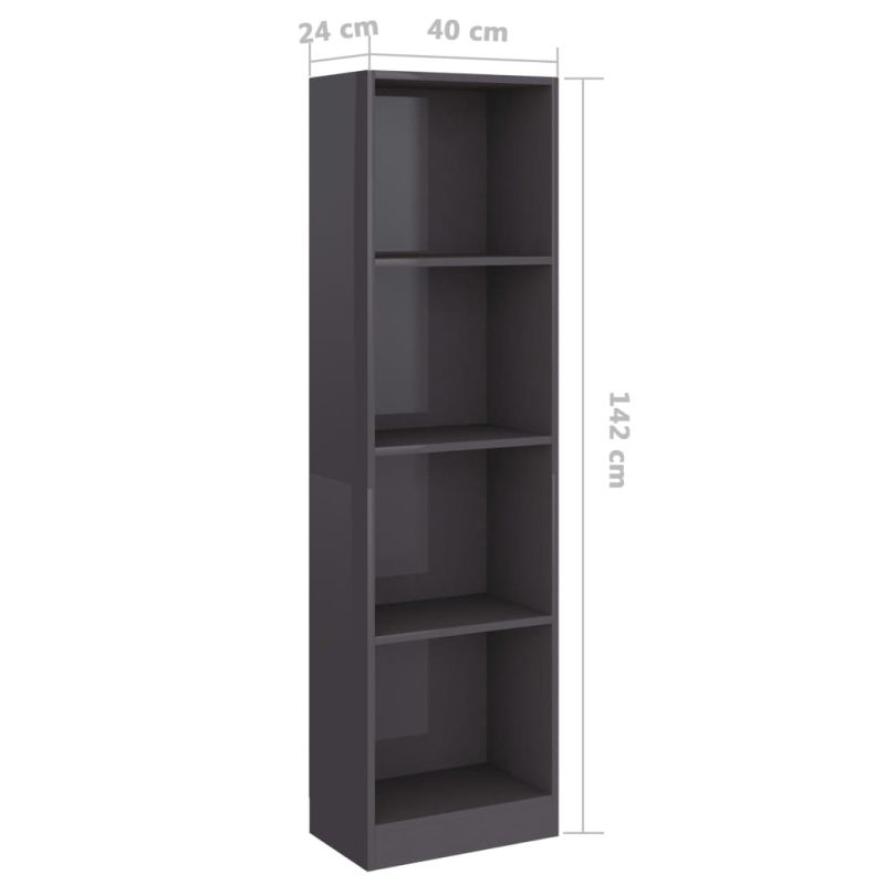 4-етажна библиотека, сив гланц, 40x24x142 см, инженерно дърво