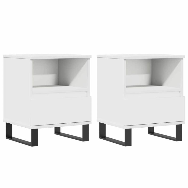 Нощни шкафчета, 2 бр, бели, 40x35x50 см, инженерно дърво