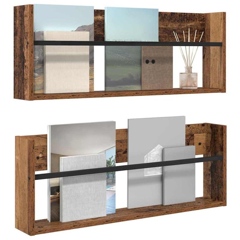 Етажерка за списания с рафт 2 pcs Старо дърво 80 x 12 x 30 см
