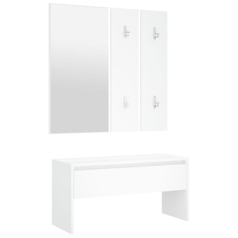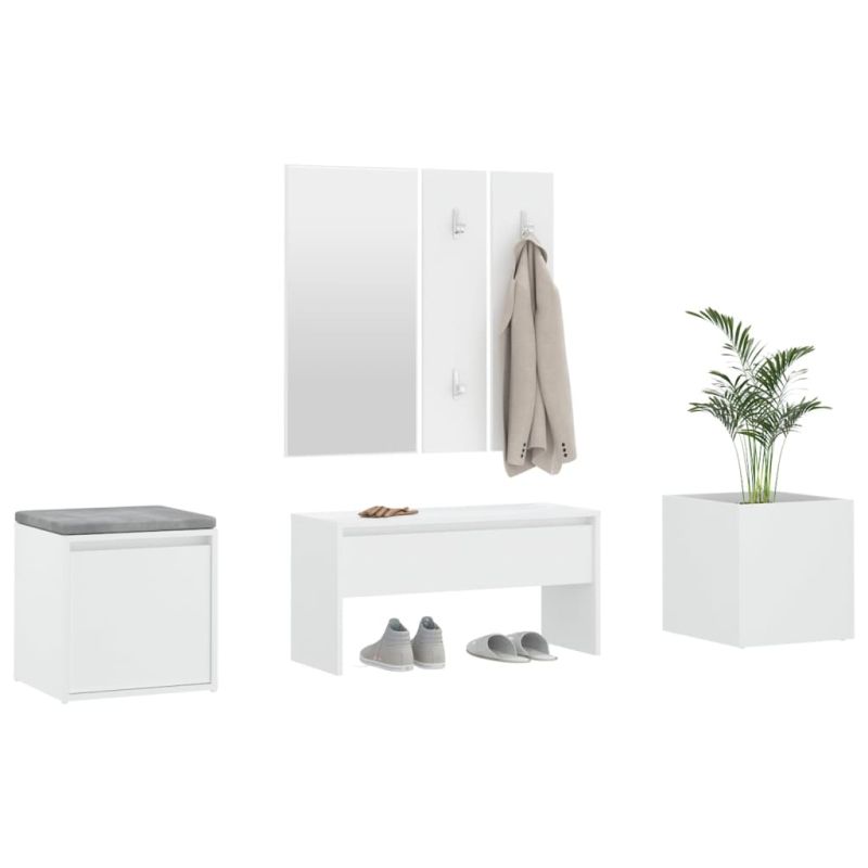 Начало Мебели Пейки Пейки за входа и пейки с място за съхранение Комплект мебели за антре, бели, инженерно дърво
