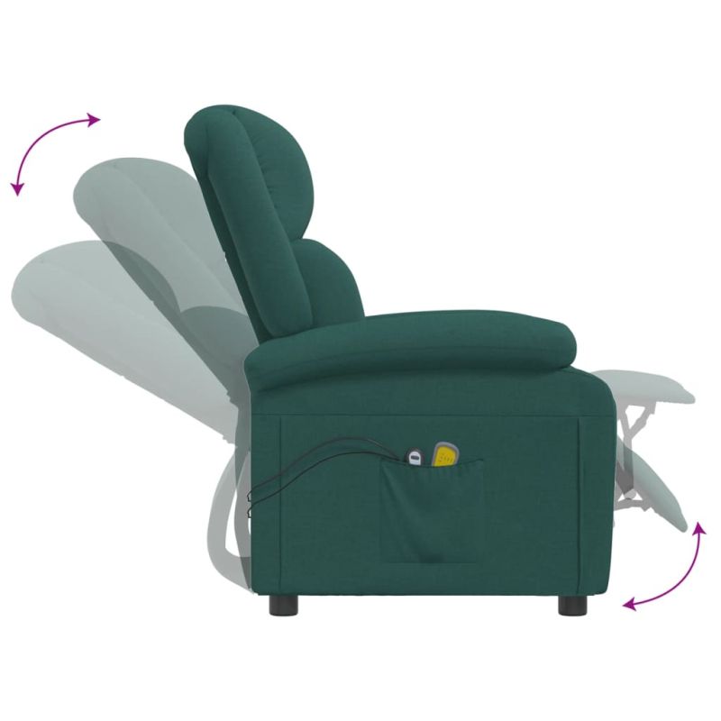 Електрически масажен стол, тъмнозелен, текстил