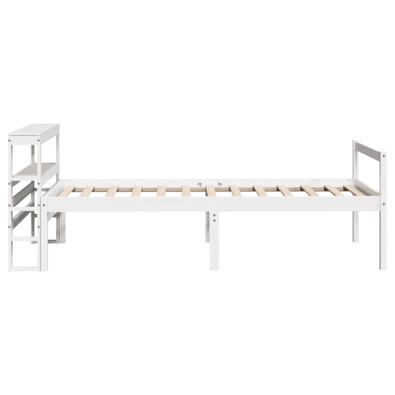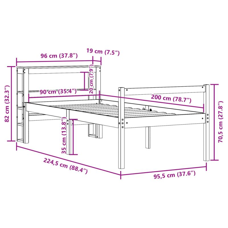 Легло за възрастни с табла, бял, 90x200 см, борово дърво масив