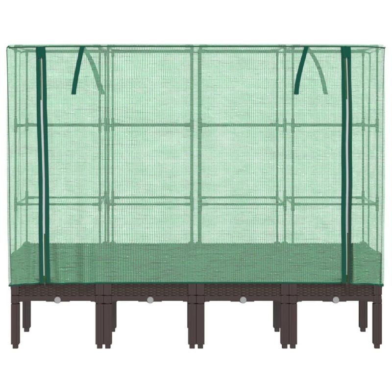 Тази повдигната леха с калъф оранжерия осигурява много пространство за отглеждане със здравата си носеща рамка.Здрава конструкция: Повдигнатата леха, изработена от полипропилен, има здрава рамка от железни тръби отгоре, която позволява на растенията да растат и да се катерят през нея.Функционален калъф: Повдигнатата леха е с водоустойчив полиетиленов калъф, който предпазва растенията от екстремни температури и не допуска насекоми, птици и дребни животни.Практичен дизайн: Повдигнатото легло е снабдено с ципове за проветряване, които ви позволяват да регулирате покривалото според нуждите. Освен това в горната част има въжета, които улесняват закрепването на мрежата към тръбата.Дизайн с вид на ратан: Повдигнатото легло с дизайн, наподобяващ ратан, придава естествен чар на външното ви жизнено пространство.Широки приложения: Повдигнатата леха осигурява достатъчно пространство за вашите растения, зеленчуци, билки и цветя. Можете да го използвате в градини, дворове, балкони и т.н.
