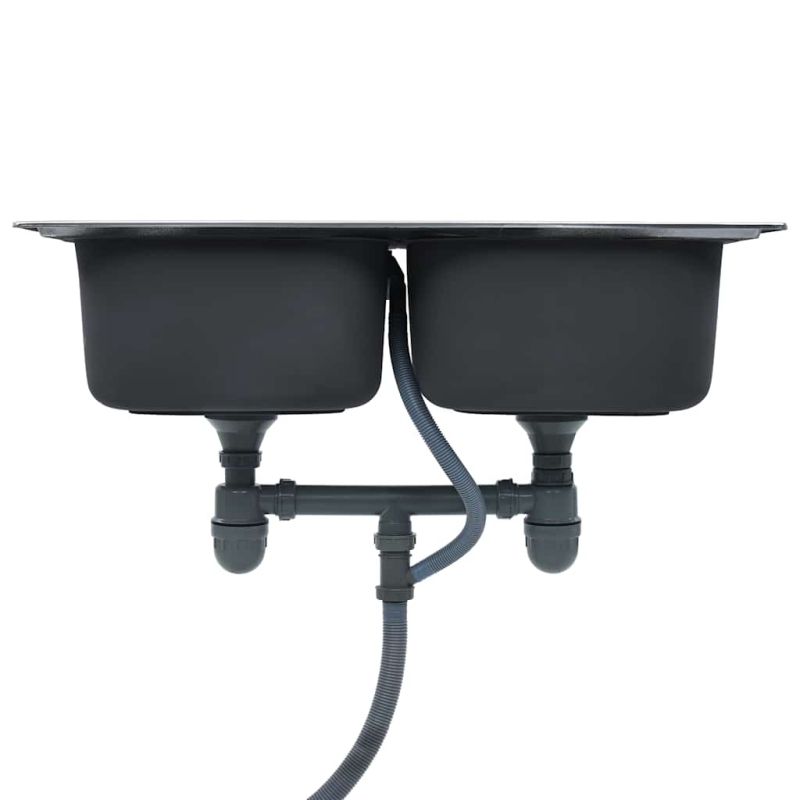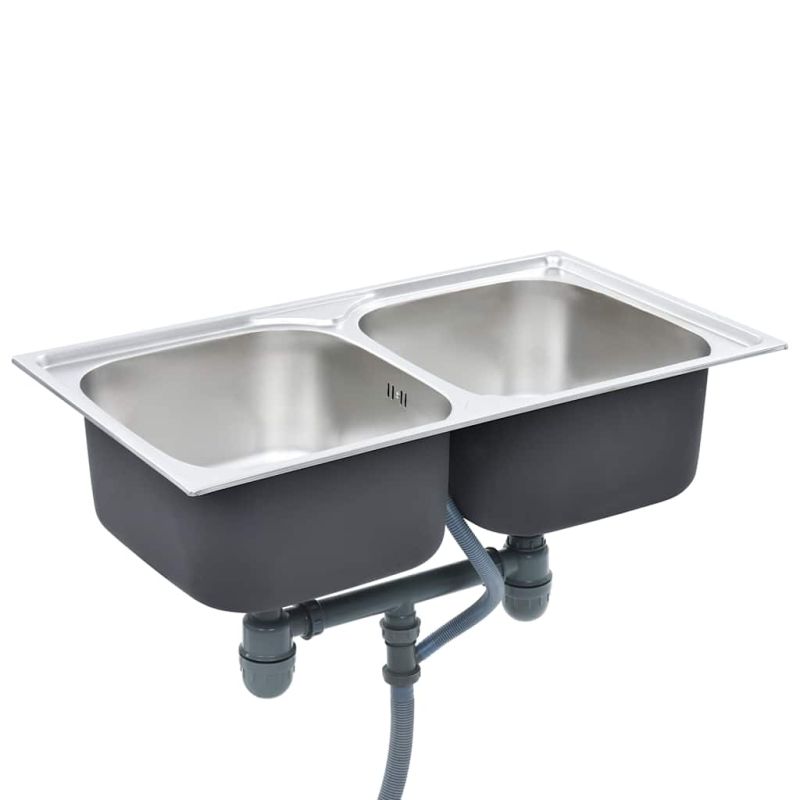 Тази съвременна кухненска мивка с дълбоко двойно изключително дълбоко корито е с изчистен, елегантен дизайн и ще бъде полезно допълнение към вашата кухня. Изработена от качествена неръждаема стомана, тази кухненска мивка е устойчива на драскотини и удари и е много издръжлива. Освен това тя отблъсква мръсотията и петната, което я прави лесна за почистване. Тази кухненска мивка пести място, с което ще ви остави по-голямо пространство за кухненски плот. Изключително дълбоките корита предоставят достатъчно място за големи тигани и чинии, а фактът, че са две, създава изцяло отделена зона, която можете да използвате. Доставката включва също цедка и сифон. Тази мивка се монтира лесно.