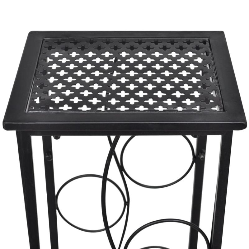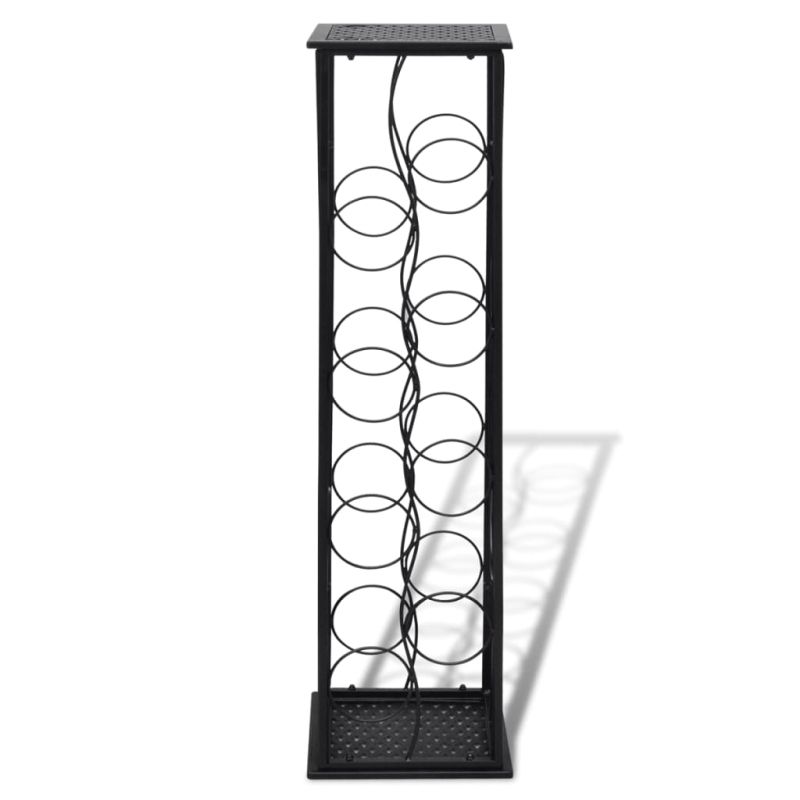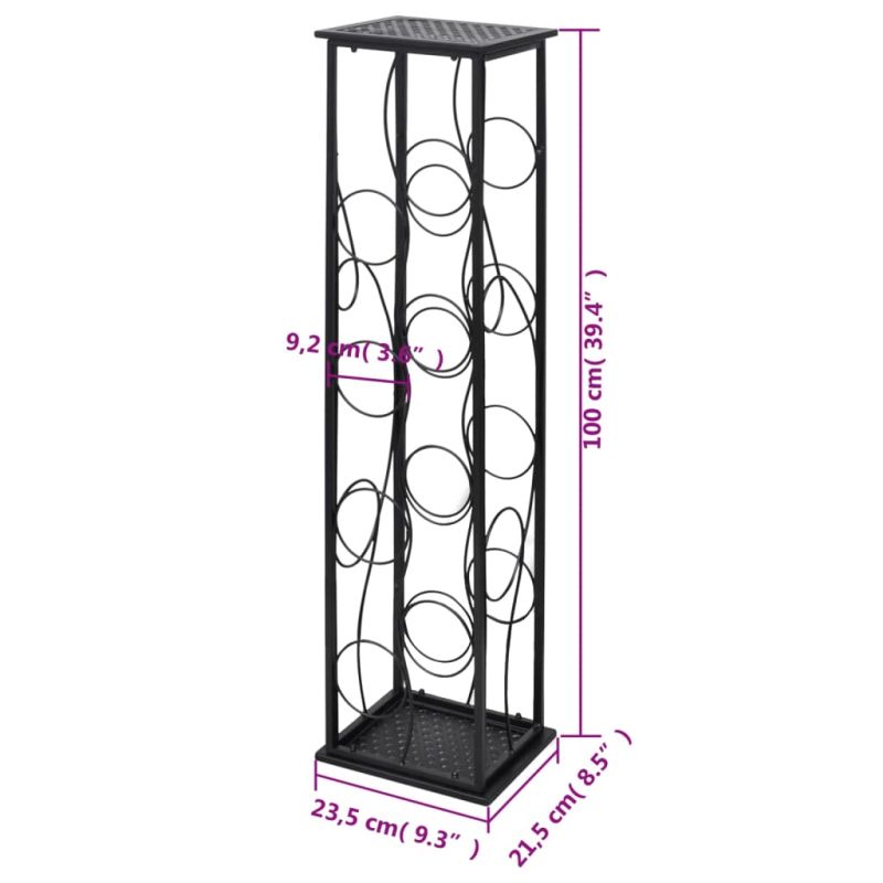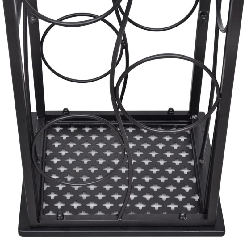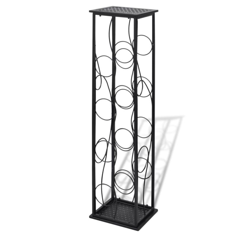 Тази стойка за вино се поставя на пода и ще прикове погледите, където и да я поставите. Изработена от ковано желязо, тя е с прахово покритие за предпазване от ръжда и ще ви радва дълги години! Тази стойка за вино е идеална за съхраняване на до 8 бутилки вино. Класическият, елегантин дизайн допринася за романтичното настроение. Тя ще бъде страхотен подарък за вашите приятели и познати, които са любители на виното. Вземете тази шикозна стойка за вино вкъщи и се наслаждавайте на живота си със стил! Предупреждение: За предотвратяване на преобръщане този продукт трябва да се използва с предоставения анкер за стена.