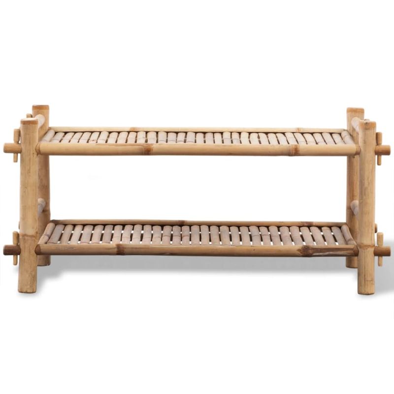Този стелаж за обувки на 2 нива е идеален за поддържане на обувките ви организирани и подредени за лесен достъп. Етажерката за обувки е лека и може да побере до 4 чифта обувки. Автентичният бамбуков цвят ще добави тропически нюанс към интериора ви. Етажерката за обувки е изработена от висококачествен бамбук, който се отличава с отлична устойчивост на атмосферни условия и издръжливост. Почиства се лесно с влажна кърпа.