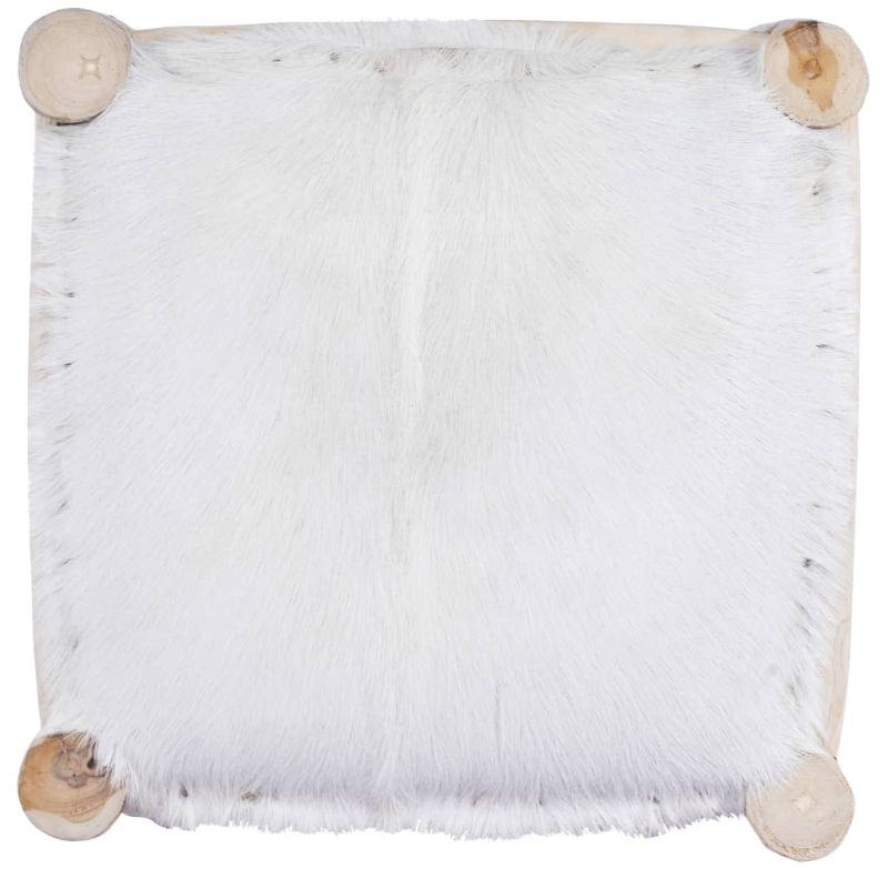 Нашият бар стол от естествена козя кожа има уникален, впечатляващ дизайн и е предназначен да добави нотка рустик чар към ресторанти или барове и дори към вашата всекидневна или трапезария. Бар столът разполага със солидна рамка от тиково дърво, което го прави стабилен и издръжлив. Седалката е тапицирана със 100% естествена козя кожа, което я прави мека на допир и удобна. Десенът на естествената кожа прави всяка мебел уникална и леко различна от другите. Важна забележка: Цветовете и шарките варират, което прави всеки артикул уникален. Доставката е на случаен принцип, което гарантира ексклузивността и индивидуалността на вашия продукт.