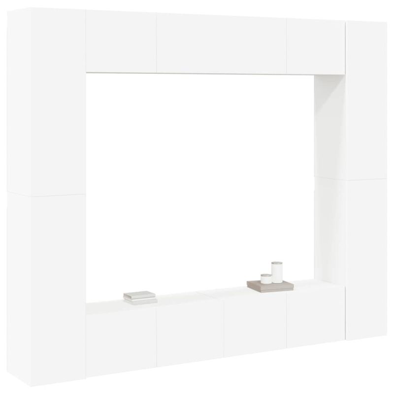 Комплект ТВ шкафове от 8 части, бял, инженерно дърво