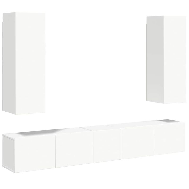 Комплект ТВ шкафове от 5 части, бял, инженерно дърво