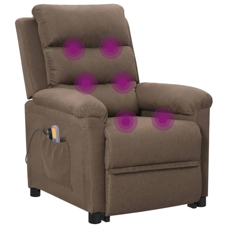 Облегнете се и се отпуснете в този изключително комфортен изправящ масажен стол! Функция за ръчно накланяне: Накланящият се стол е специално проектиран с 3 позиции на наклон, така че да можете да регулирате ръчно облегалката и поставката за крака според вашето удобство.Функция за повдигане: Този стол реклайнер е оборудван с електрически двигател с функция за повдигане. Благодарение на ръчното дистанционно управление с 2 бутона и функцията, която избутва целия стол нагоре, можете лесно да се изправите, без да натоварвате гърба и коленете си.Функция за вибрация: Представените 6 масажни точки ви позволяват да изпитате по-целенасочен масаж. Освен това включеното ръчно управление ви позволява да избирате различни програми за масаж. Функцията за масаж се захранва от USB конектора, но сертифицираният 5V USB източник на захранване не е включен.Удобно седене: Дебело подплатената седалка, облегалката и широките подлакътници, покрити с текстил, осигуряват уютно и топло усещане, което ви кара да се чувствате като в прегръдка, докато седите. Тъканта се отличава със семпъл и изчистен вид и е дишаща и издръжлива.Здрава и стабилна рамка: Рамката, изработена от дърво и метал, осигурява здрава структура и стабилност. Този накланящ се фотьойл е удобен и издръжлив.