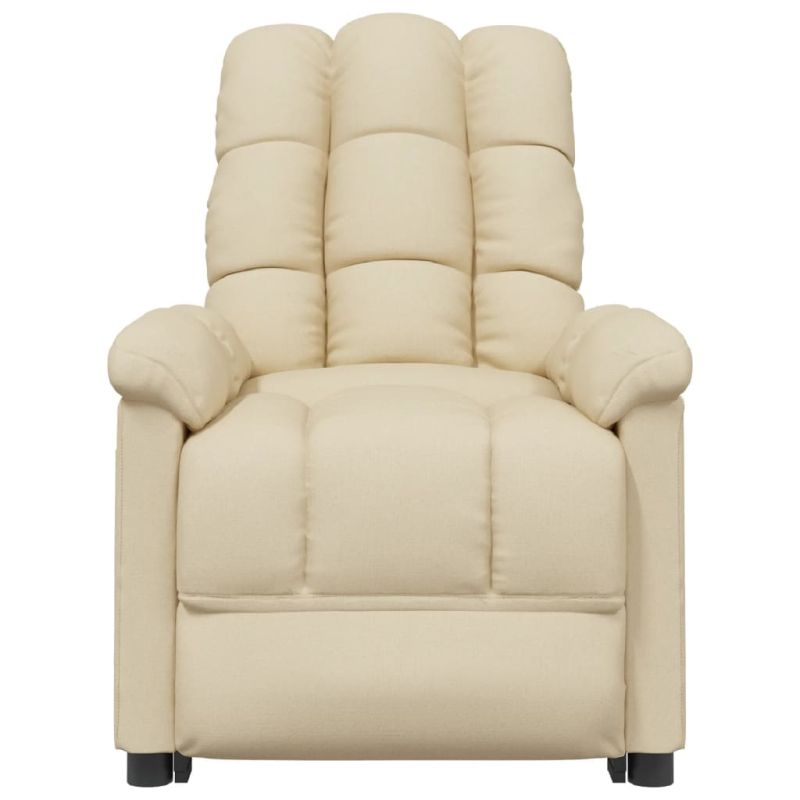 Облегнете се и се отпуснете в този изключително комфортен изправящ масажен стол! Функция за ръчно накланяне: Накланящият се стол е специално проектиран с 3 позиции на наклон, така че да можете да регулирате ръчно облегалката и поставката за крака според вашето удобство.Функция за повдигане: Този стол реклайнер е оборудван с електрически двигател с функция за повдигане. Благодарение на ръчното дистанционно управление с 2 бутона и функцията, която избутва целия стол нагоре, можете лесно да се изправите, без да натоварвате гърба и коленете си.Функция за вибрация: Представените 6 масажни точки ви позволяват да изпитате по-целенасочен масаж. Освен това включеното ръчно управление ви позволява да избирате различни програми за масаж. Функцията за масаж се захранва от USB конектора, но сертифицираният 5V USB източник на захранване не е включен.Удобно седене: Дебело подплатената седалка, облегалката и широките подлакътници, покрити с текстил, осигуряват уютно и топло усещане, което ви кара да се чувствате като в прегръдка, докато седите. Тъканта се отличава със семпъл и изчистен вид и е дишаща и издръжлива.Здрава и стабилна рамка: Рамката, изработена от дърво и метал, осигурява здрава структура и стабилност. Този накланящ се фотьойл е удобен и издръжлив.
