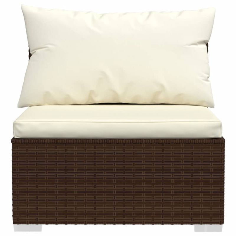 Градински лаундж комплект с възглавници 7 части кафяв полиратан