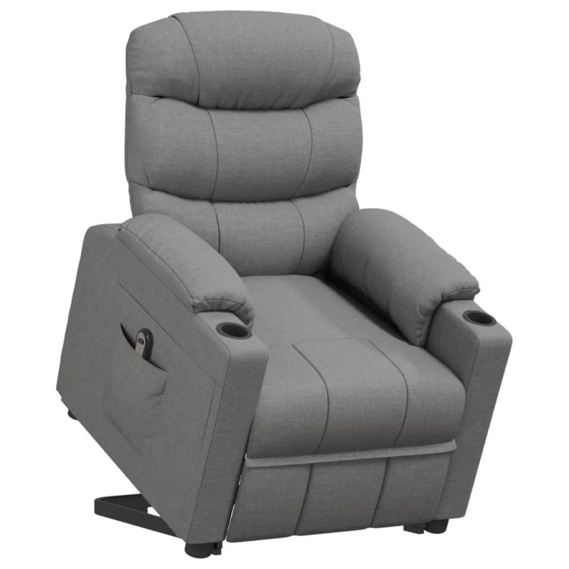 Облегнете се и се отпуснете в този изключително комфортен изправящ стол! Функция за ръчно накланяне: Накланящият се стол е специално проектиран с 3 позиции на наклон, така че да можете да регулирате ръчно облегалката и поставката за крака според вашето удобство.Функция за повдигане: Този стол реклайнер е оборудван с електрически двигател с функция за повдигане. Благодарение на ръчното дистанционно управление с 2 бутона и функцията, която избутва целия стол нагоре, можете лесно да се изправите, без да натоварвате гърба и коленете си.Удобно седене: Дебело подплатената седалка, облегалката и широките подлакътници, покрити с текстил, осигуряват уютно и топло усещане, което ви кара да се чувствате като в прегръдка, докато седите. Тъканта се отличава със семпъл и изчистен вид и е дишаща и издръжлива.Здрава и стабилна рамка: Рамката, изработена от дърво и метал, осигурява здрава структура и стабилност. Този накланящ се фотьойл е удобен и издръжлив.