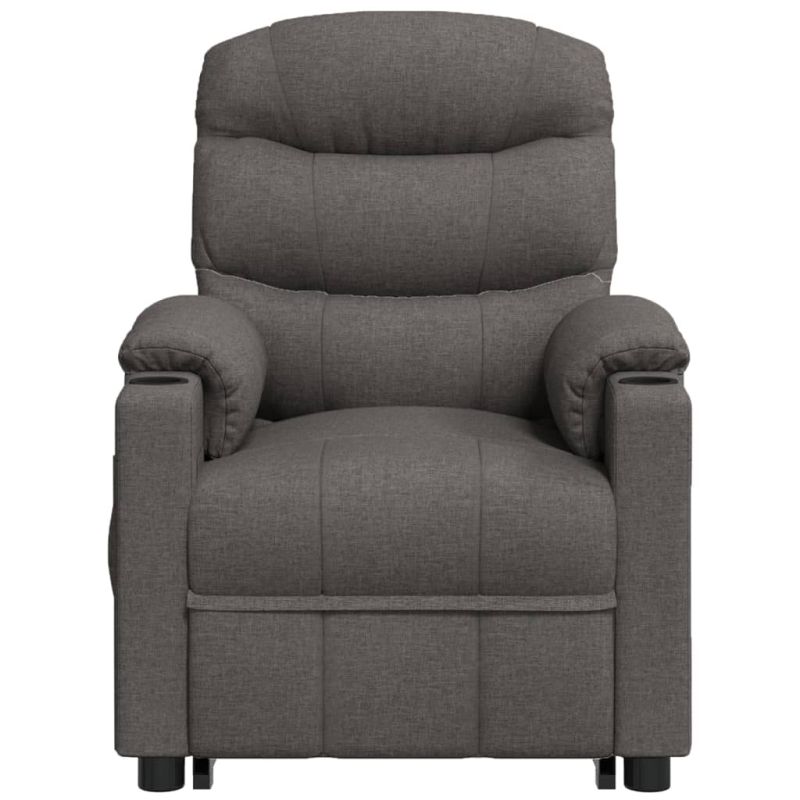 Облегнете се и се отпуснете в този изключително комфортен изправящ масажен стол! Функция за ръчно накланяне: Накланящият се стол е специално проектиран с 3 позиции на наклон, така че да можете да регулирате ръчно облегалката и поставката за крака според вашето удобство.Функция за повдигане: Този стол реклайнер е оборудван с електрически двигател с функция за повдигане. Благодарение на ръчното дистанционно управление с 2 бутона и функцията, която избутва целия стол нагоре, можете лесно да се изправите, без да натоварвате гърба и коленете си.Функция за вибрация: Представените 6 масажни точки ви позволяват да изпитате по-целенасочен масаж. Освен това включеното ръчно управление ви позволява да избирате различни програми за масаж. Функцията за масаж се захранва от USB конектора, но сертифицираният 5V USB източник на захранване не е включен.Удобно седене: Дебело подплатената седалка, облегалката и широките подлакътници, покрити с текстил, осигуряват уютно и топло усещане, което ви кара да се чувствате като в прегръдка, докато седите. Тъканта се отличава със семпъл и изчистен вид и е дишаща и издръжлива.Здрава и стабилна рамка: Рамката, изработена от дърво и метал, осигурява здрава структура и стабилност. Този накланящ се фотьойл е удобен и издръжлив.