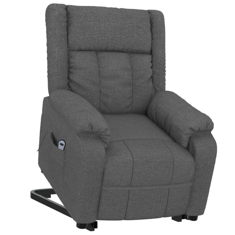 Облегнете се и се отпуснете в този изключително комфортен изправящ стол! Функция за ръчно накланяне: Накланящият се стол е специално проектиран с 3 позиции на наклон, така че да можете да регулирате ръчно облегалката и поставката за крака според вашето удобство.Функция за повдигане: Този стол реклайнер е оборудван с електрически двигател с функция за повдигане. Благодарение на ръчното дистанционно управление с 2 бутона и функцията, която избутва целия стол нагоре, можете лесно да се изправите, без да натоварвате гърба и коленете си.Удобно седене: Дебело подплатената седалка, облегалката и широките подлакътници, покрити с текстил, осигуряват уютно и топло усещане, което ви кара да се чувствате като в прегръдка, докато седите. Тъканта се отличава със семпъл и изчистен вид и е дишаща и издръжлива.Здрава и стабилна рамка: Рамката, изработена от дърво и метал, осигурява здрава структура и стабилност. Този накланящ се фотьойл е удобен и издръжлив.