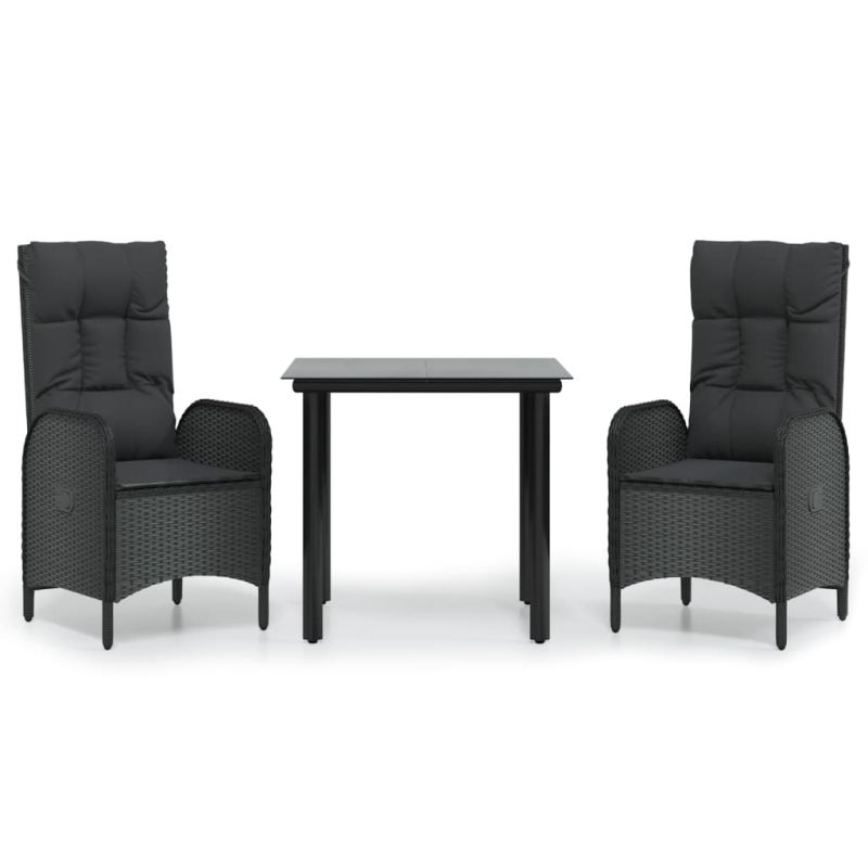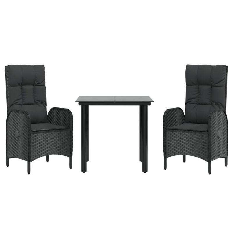 Този модерен градински трапезен комплект, отличаващ се с елегантен и съвременен дизайн, е чудесен избор за вечеря или почивка във вашата градина. Материал, устойчив на атмосферни влияния: PE ратан, известен също като полиратан, е устойчив на атмосферни влияния и лесен за почистване. Той остава красив отвън за дълъг период от време. Предлага отлично качество, удобство и естетичен вид.Здрава рамка: Прахово боядисаните стоманени рамки правят комплекта за хранене на открито здрав и стабилен за ежедневна употреба на открито.Практичен плот: Гладкият плот на градинската маса е изработен от закалено стъкло, което се почиства лесно с влажна кърпа. В допълнение, здравият плот е идеален за поставяне на ястия, напитки и други декоративни елементи.Функция за накланяне: Градинските столове са специално проектирани с функция за накланяне, така че да можете да регулирате облегалката според вашето удобство.Удобно седене: Облегалката добавя повече комфорт при седене на градинския стол. Освен това дебело подплатените възглавници осигуряват комфорт по време на седене. Добре е да се знае:За да бъде сглобяването възможно най-лесно, всеки продукт се доставя с ръководство. Забележка:За да сте сигурни, че вашите външни мебели ще останат красиви, ви препоръчваме да ги защитите с водоустойчиво покривало.
