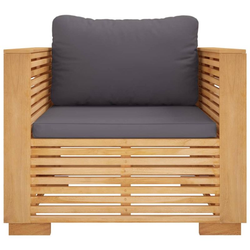 Градински диван с тъмносиви възглавници, тиково дърво масив