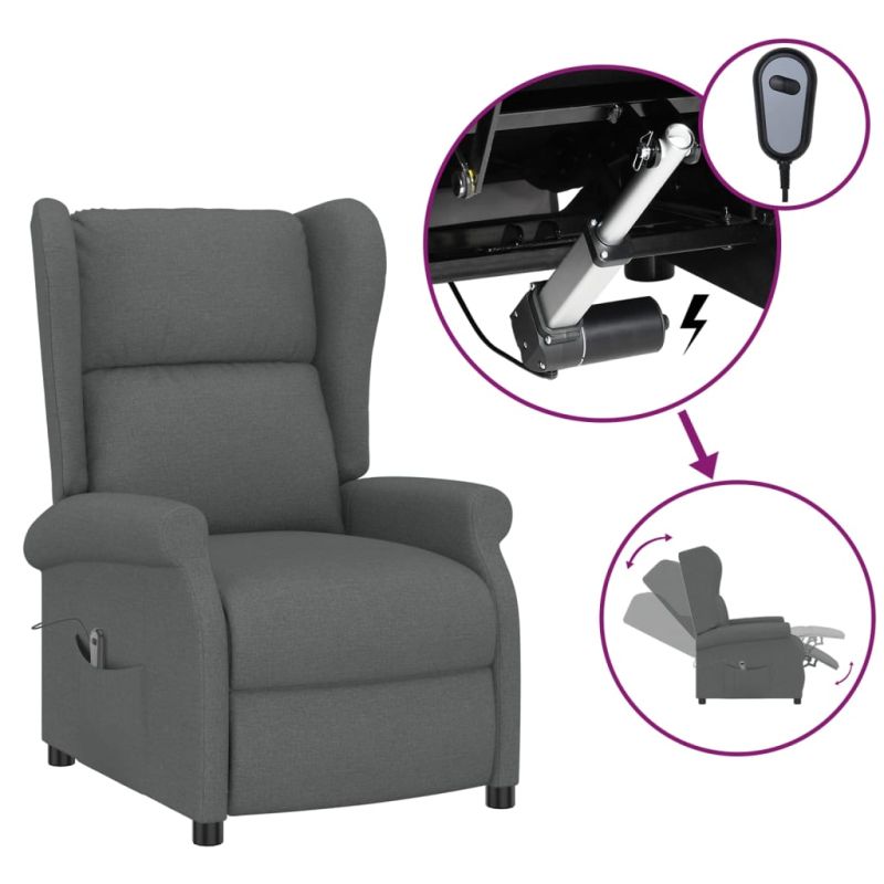 Wingback електрически реклайнер стол, тъмносив, текстил