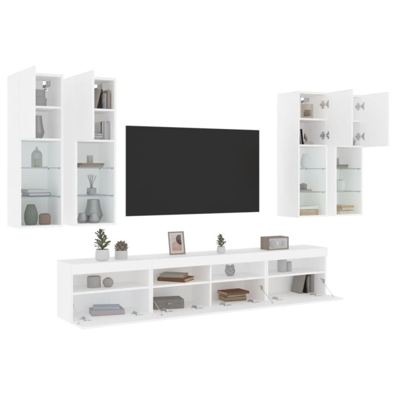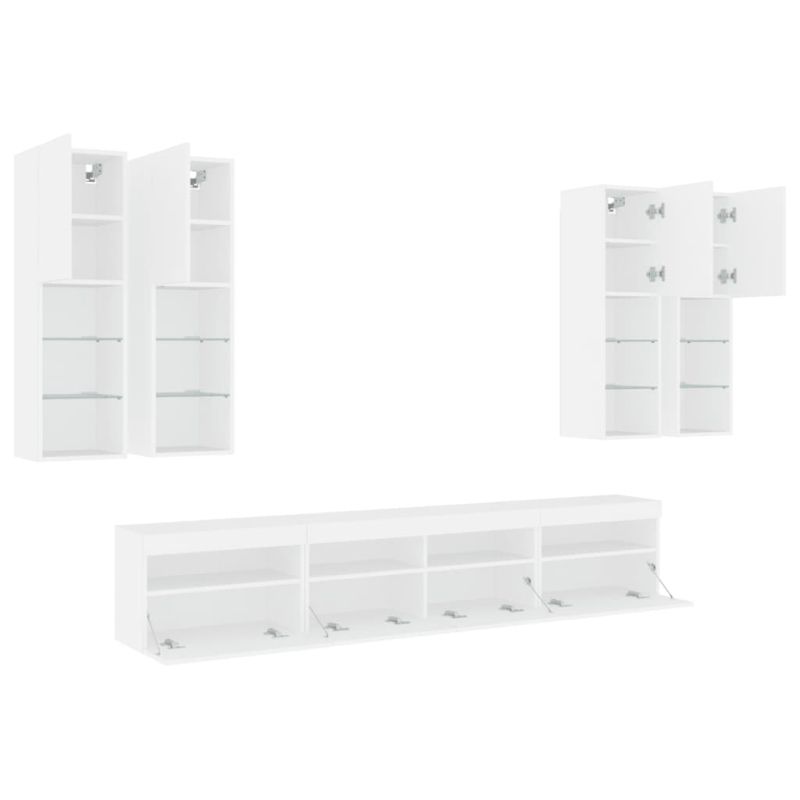 Комплект ТВ стенни шкафове, 7 части, с LED светлини, бели