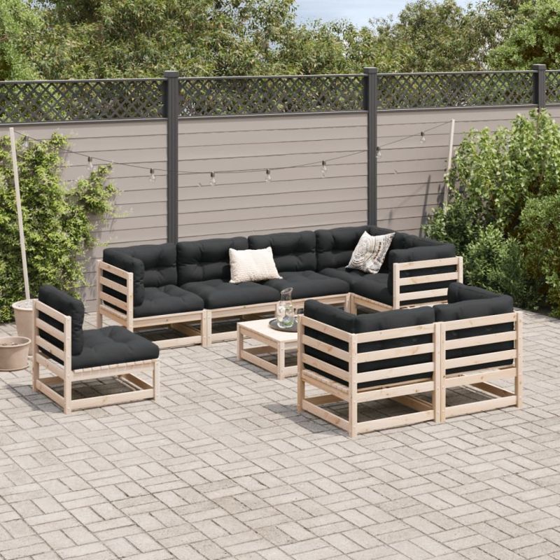 Градински комплект диван от 9 части, масивна борова дървесина