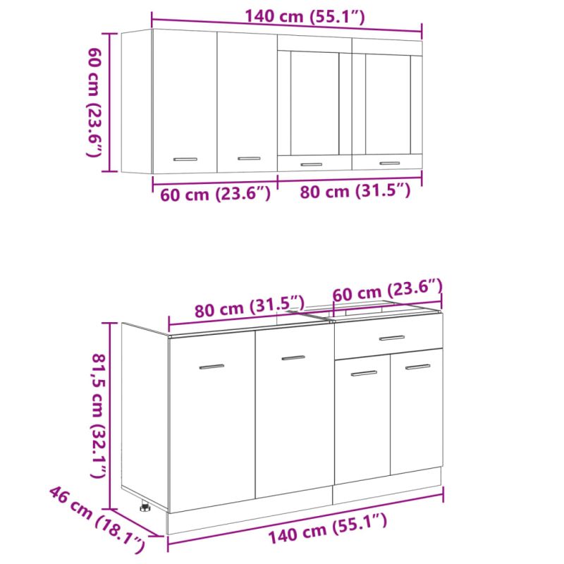 Този комплект кухненски шкафове оптимизира вашето кухненско пространство, осигурявайки достатъчно място за съхранение на вашите вещи! Издръжлив материал: Инженерната дървесина е с изключително качество с гладка повърхност и също така се отличава със здравина, стабилност и устойчивост на влага.Достатъчно пространство за съхранение: Кухненският модул предлага достатъчно място за съхранение на купи, чинии, тенджери и други кухненски принадлежности.Здрав плот: Горната част на кухненския шкаф може да се използва за поставяне на подправки, кухненски прибори и почистващи препарати.Спестяващ място дизайн: Този кухненски шкаф може да се монтира на стената, за да добави допълнително място за съхранение. По този начин можете да увеличите максимално пространството на пода и да поддържате чистота.Лесен за поддръжка: Благодарение на гладката си повърхност, кухненският модул за съхранение се почиства лесно с влажна кърпа и изисква по-малко поддръжка. Внимание:За да предотвратите преобръщане, този продукт трябва да се използва с предоставеното устройство за закрепване на стена. Добре е да се знае:Работният плот не е включен в доставката.Винтовете и дюбелите за стената не са включени. Съветваме ви да намерите и използвате винтове и дюбели, подходящи специално за вашите стени. Ако не сте сигурни, можете да се консултирате с професионалист. Моля, прочетете и следвайте всяка стъпка от инструкциите.