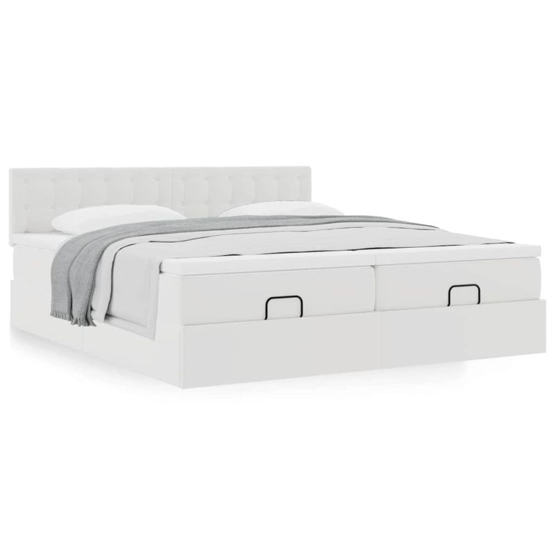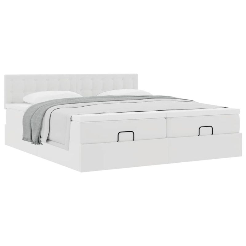 Османска легло с матраци, бяло, 160x200 см, изкуствена кожа