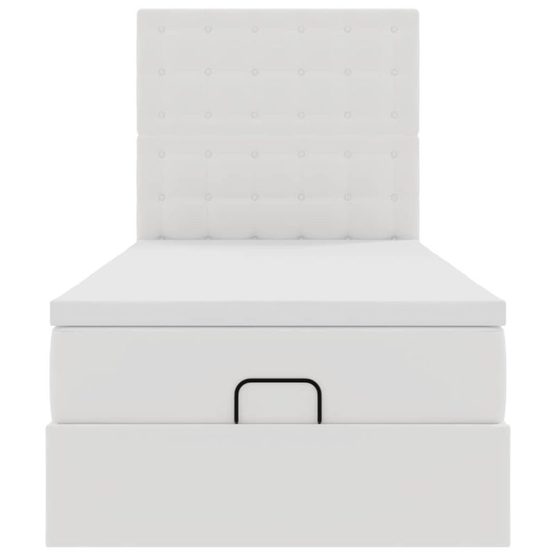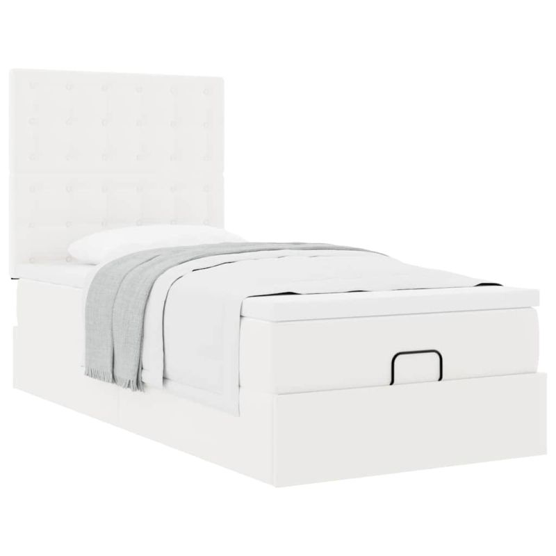 Османска легло с матрак, бяло, 90x190 см, изкуствена кожа