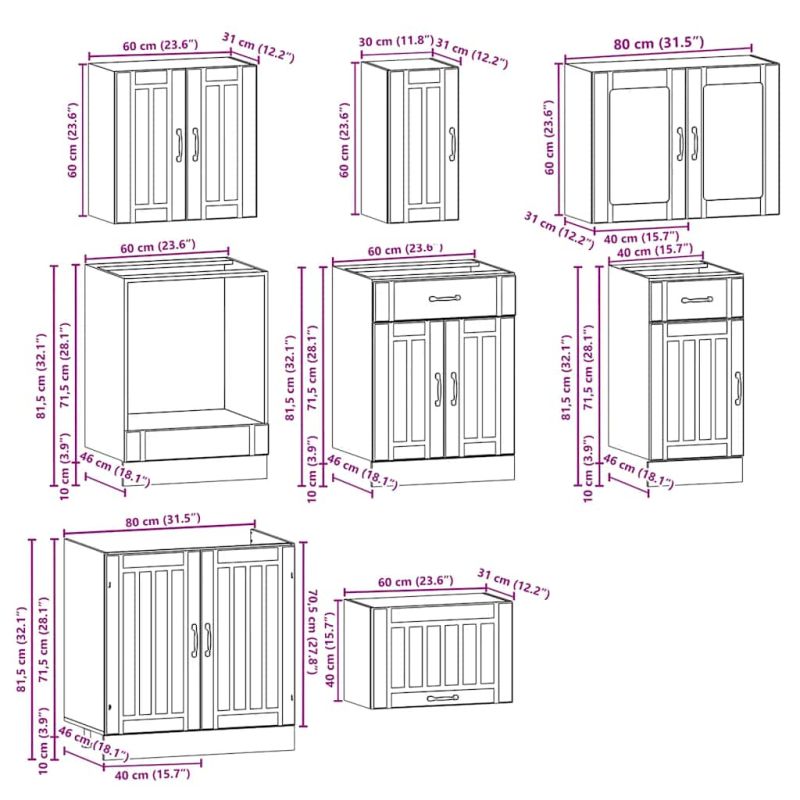 Комплект кухненски шкафове от 8 части Kalmar, инженерно дърво