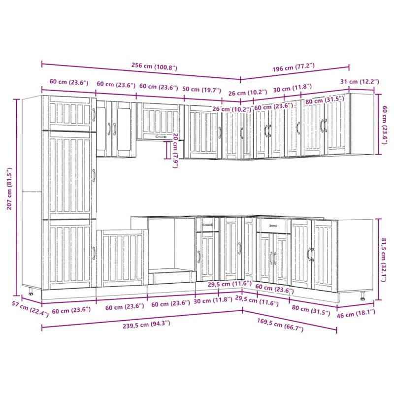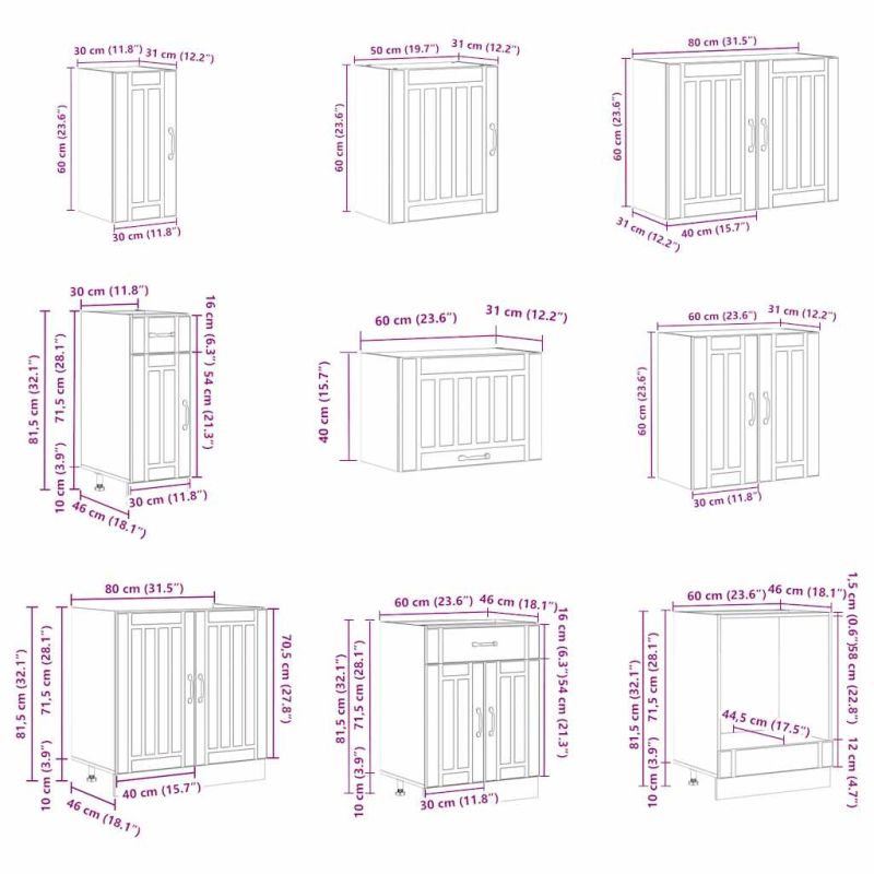 Комплект кухненски шкафове от 14 части Lucca, инженерно дърво