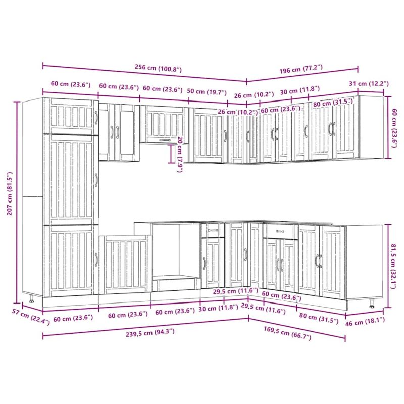 Комплект кухненски шкафове от 14 части Lucca, инженерно дърво
