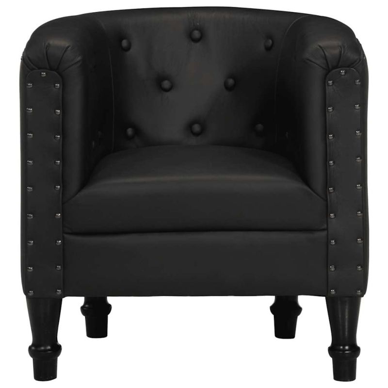 Този луксозен фотьойл със стилен дизайн ще бъде акцент във всяка стая. Той ще бъде идеална мебел, където вашето семейство да седне на разговор, телевизия или просто за почивка. Креслото е тапицирано с мека естествена козя кожа, която е плътно подплатена за комфорт. Краката от масивно мангово дърво са много здрави и издръжливи. С грациозно извитите линии, фотьойлът ще добави щрих на лукс, класа и стил към всеки интериор. Този фотьойл се сглобява лесно.