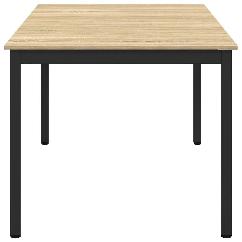 Тази правоъгълна трапезна маса съчетава модерна естетика и функционален дизайн, правейки я стилен акцент в трапезария или кухня. С чисти линии и минималистичен вид, тя е идеална за съвременните домове, които искат да добавят елегантност. Формата й е универсална и е практична за вечери или прояви. Инженерна дървесина Има здрава повърхност от инженерна дървесина, която е устойчива на ежедневно износване и лесна за почистване. Този материал добавя изящество и подобрява вида на твоето пространство. Черна метална рамка Стилната черна метална рамка осигурява стабилност и съвременен вид, който пасва на модерния декор в трапезарии и дневни. Квадратни метални крака Тези крака са проектирани да осигурят стабилност и дълготрайност, поддържайки масата здрава във времето. Проста функционалност Масата е лесна за употреба, а повърхността й се почиства лесно. Просто я избършеш с влажна кърпа и готово - перфектна е за заети домове. Изисква сглобяване Сглобяването изисква само отвертка и двама души, така че е бързо и просто, идеална е за тези, които искат бързо да подобрят интериора си.