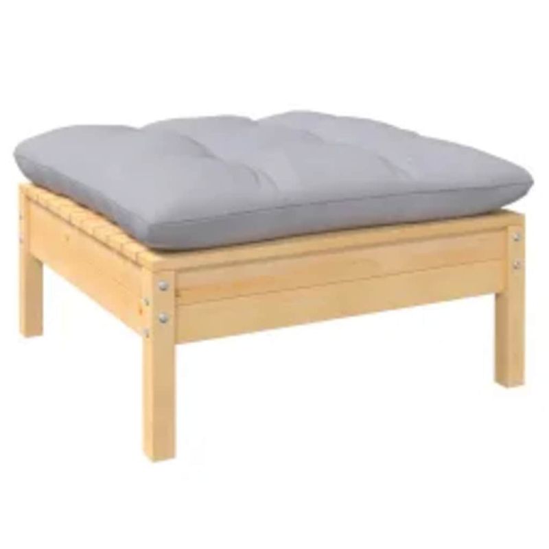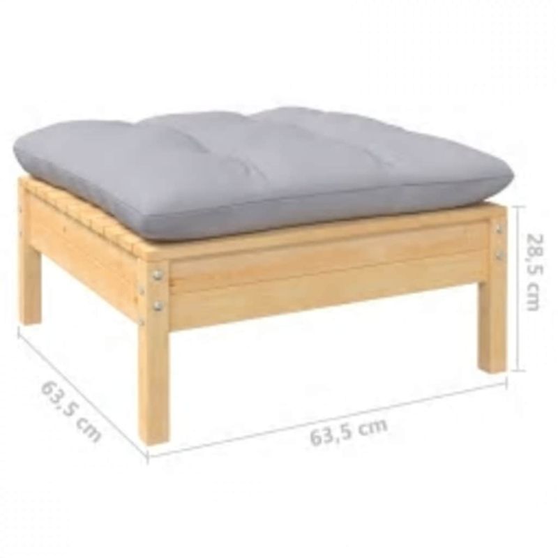 Градински лаундж комплект със сиви възглавници, 4 части, бор