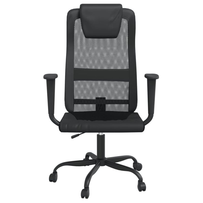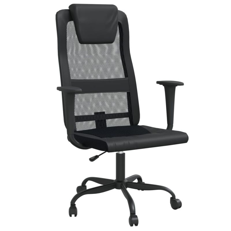 Офис стол, регулируем, черен, мрежеста материя и еко кожа