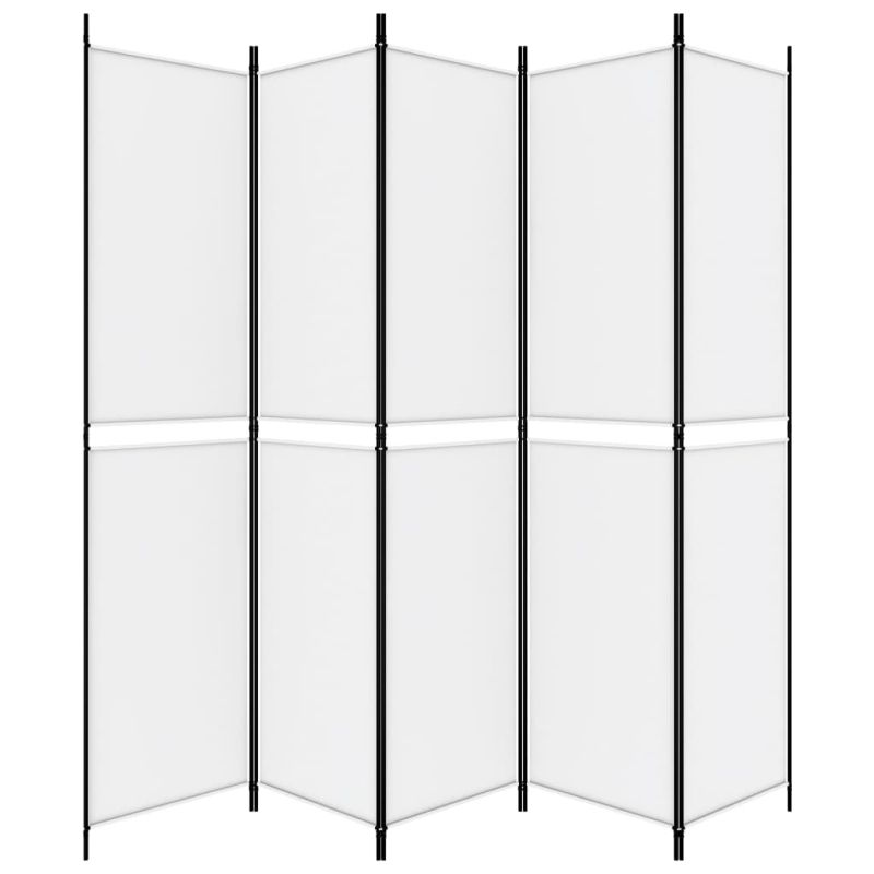 Параван за стая, 5 панела, бял, 250x220 см, текстил