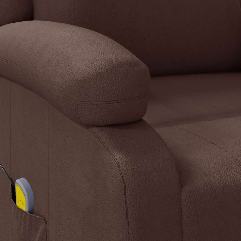 Облегнете се и се отпуснете в този изключително комфортен масажен стол! Функция за ръчно накланяне: Накланящият се стол е специално проектиран с 3 позиции на наклон, така че да можете да регулирате ръчно облегалката и поставката за крака според вашето удобство.Функция за вибрация: Представените 6 масажни точки ви позволяват да изпитате по-целенасочен масаж. Освен това включеното ръчно управление ви позволява да избирате различни програми за масаж. Продуктът има USB конектор, който изисква сертифициран 5V USB захранващ източник (не е включен).Удобно седене: Дебело подплатената седалка, облегалката и широките подлакътници, покрити с изкуствена кожа, осигуряват уютно и топло усещане, което ви кара да се чувствате като в прегръдка, докато седите. Изкуствената кожа е много издръжлив материал. Устойчива е на петна, което я прави лесна за почистване с влажна кърпа. Гладката повърхност също така придава луксозен вид и красотата на истинската кожа.Здрава и стабилна рамка: Рамката, изработена от дърво и метал, осигурява здрава структура и стабилност. Този накланящ се фотьойл е удобен и издръжлив.