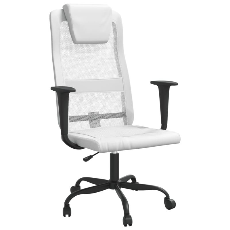 Офис стол, регулируем, бял, мрежеста материя и еко кожа