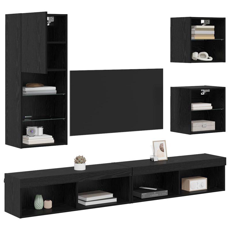 Начало Дом и градина Мебели Шкафове и решения за съхранение Бюфети и шкафове ТВ стенни единици с LED 5 pcs Черния дъб Инженерно дърво