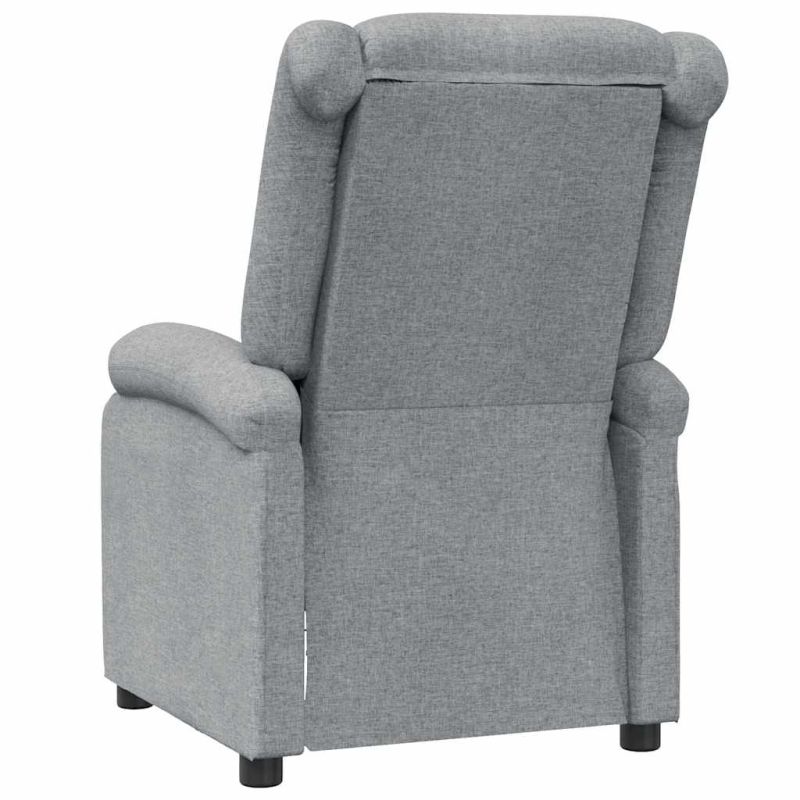 Облегнете се и се отпуснете в този изключително комфортен наклоняем стол! Функция за ръчно накланяне: Накланящият се стол е специално проектиран с 3 позиции на наклон, така че да можете да регулирате ръчно облегалката и поставката за крака според вашето удобство.Удобно седене: Дебело подплатената седалка, облегалката и широките подлакътници, покрити с текстил, осигуряват уютно и топло усещане, което ви кара да се чувствате като в прегръдка, докато седите. Тъканта се отличава със семпъл и изчистен вид и е дишаща и издръжлива.Здрава и стабилна рамка: Рамката, изработена от дърво и метал, осигурява здрава структура и стабилност. Този накланящ се фотьойл е удобен и издръжлив.