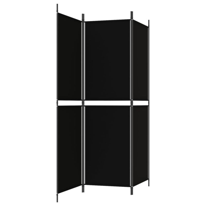 Параван за стая, 3 панела, черен, 150x180 см, плат