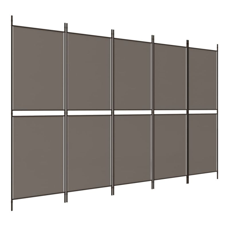Параван за стая, 5 панела, антрацит, 250x200 cм, текстил