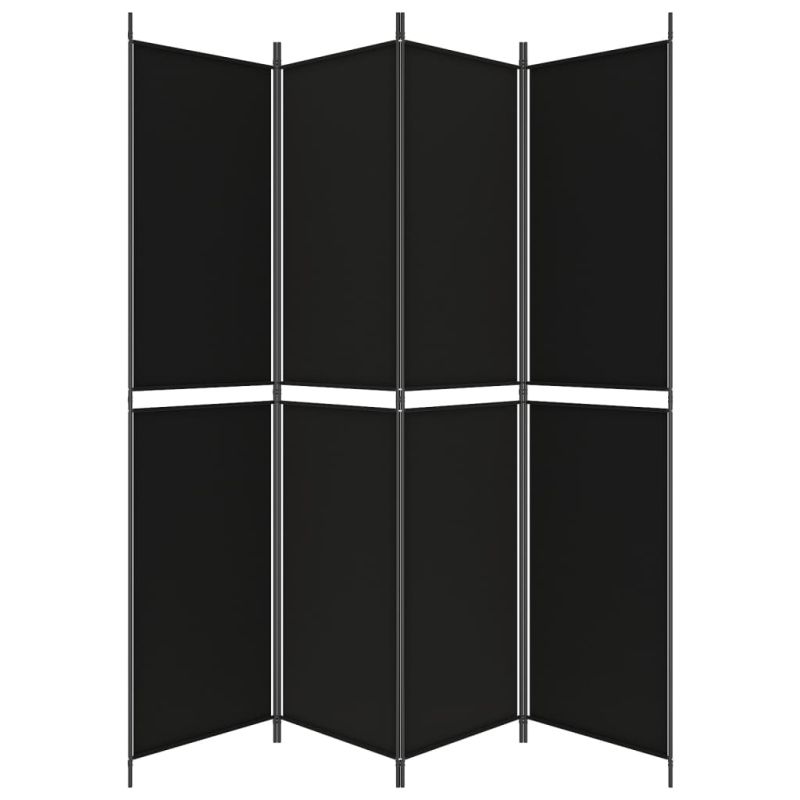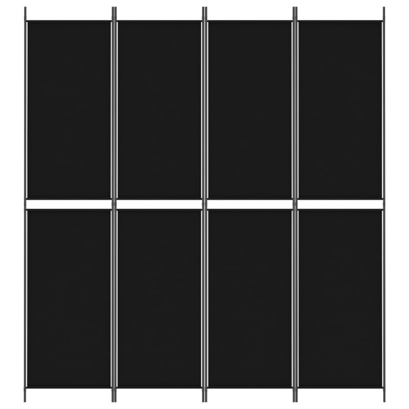 Параван за стая, 4 панела, черен, 200x220 cм, плат