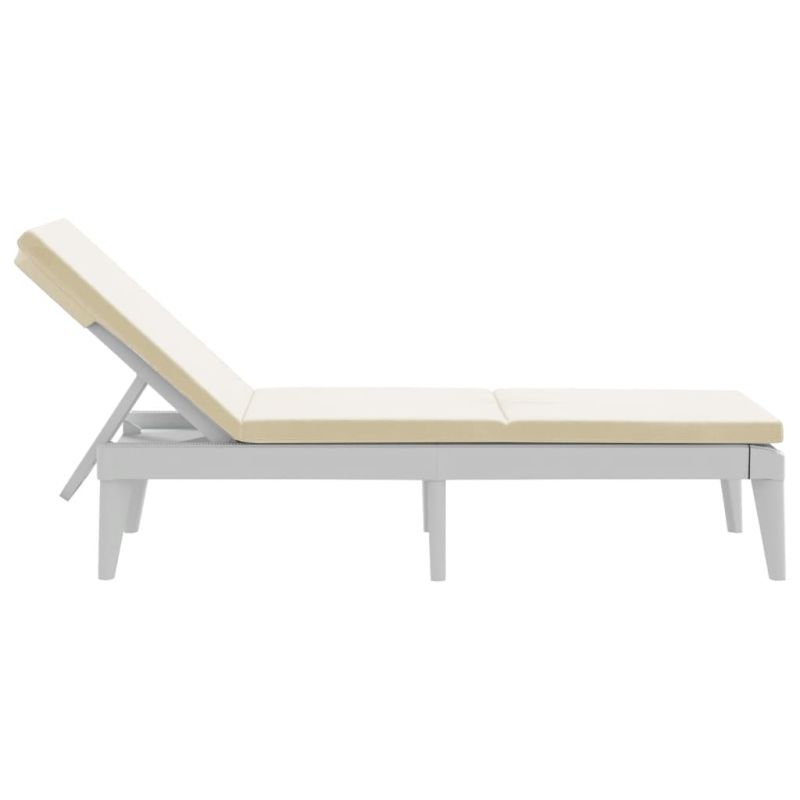 Шезлонг с възглавница, бял, 186x60x29 см, PP