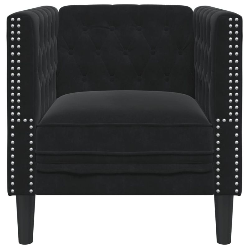 Честърфийлд кресло, черно, кадифе