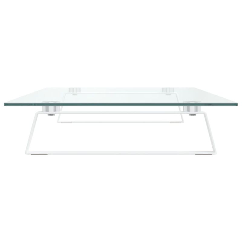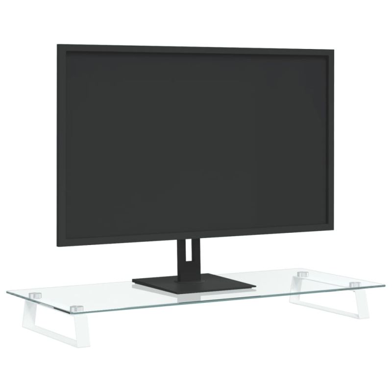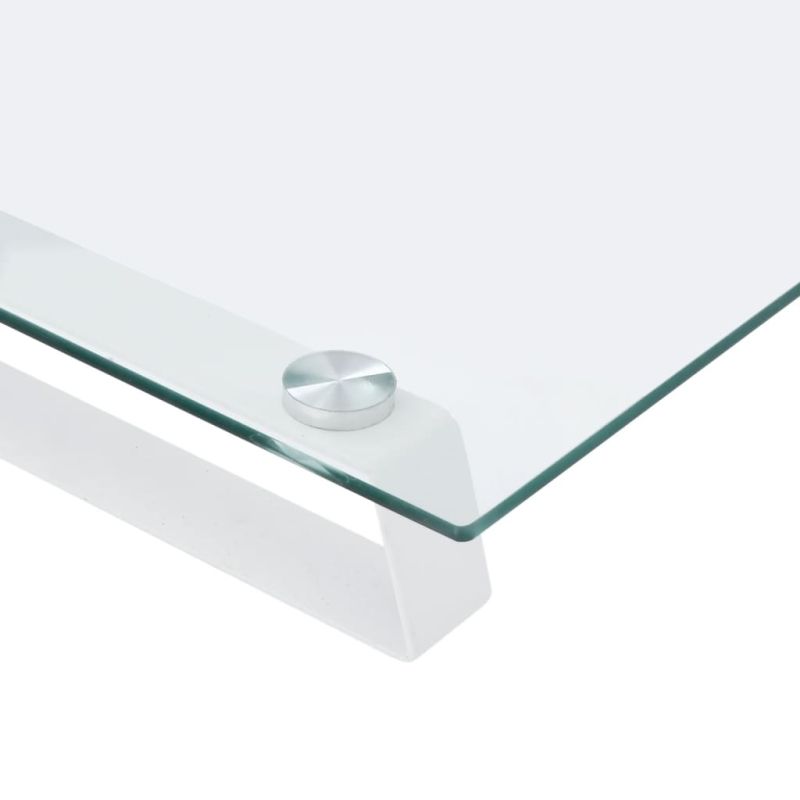 Стойка за монитор, бяла, 80x35x8 см, закалено стъкло и метал
