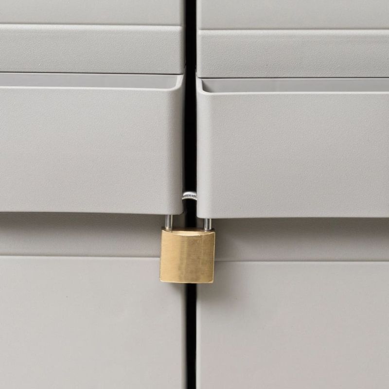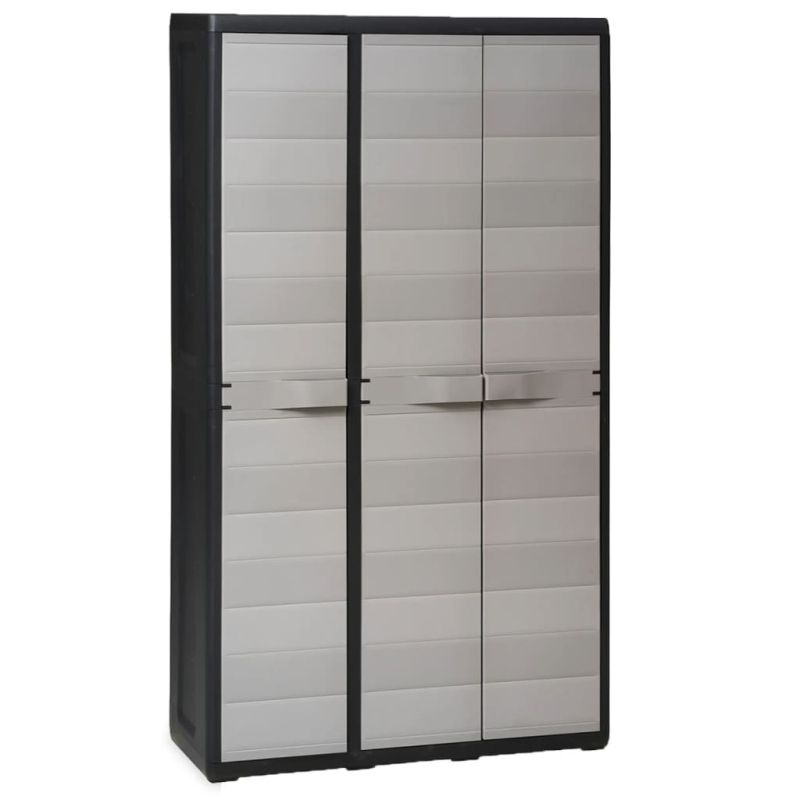Нашият висококачествен шкаф за съхранение е идеален за организиране и съхраняване на вашите домакински пособия, инструменти или други предмети в градината, вътрешния двор и т.н. С класическия си дизайн този шкаф ще се впише във всеки декор. Този TÜV-GS сертифициран шкаф е изработен от здрав, издръжлив полипропилен (PP). Шкафът за съхранение има рафтове с добра проветряемост, които могат да бъдат настроени така, че да побират предмети с различни размери. Градинският шкаф може да бъде заключен с катинар за допълнителна безопасност (катинарът не е включен). Този градински шкаф за съхранение е много лесен за почистване. Градинският шкаф има компактен дизайн и ще предложи максимално от ограниченото пространство. Сглобяването е лесно.