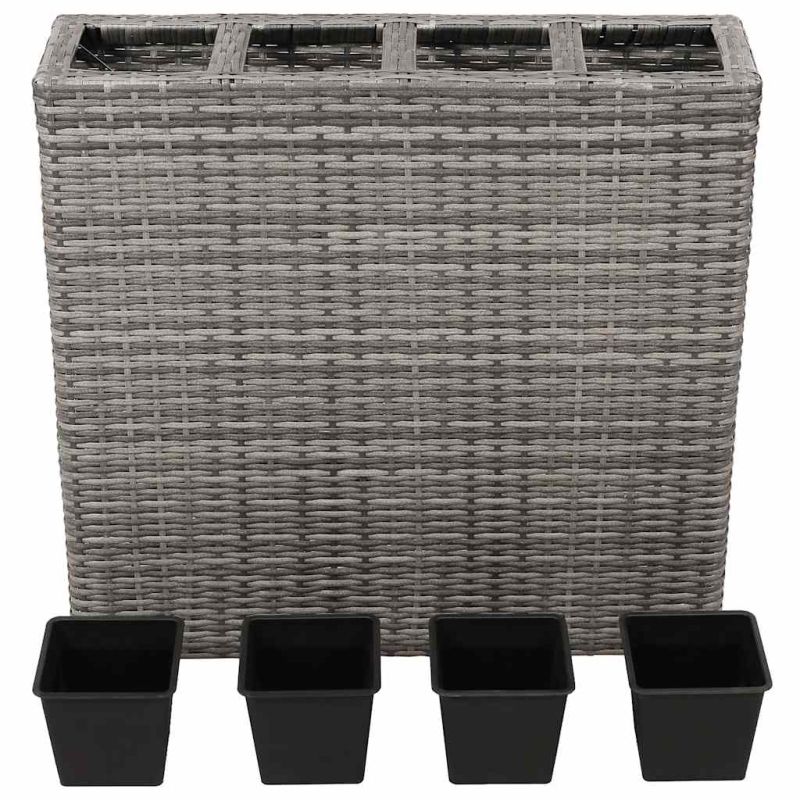 Градинска повдигната леха с 4 саксии, полиратан, сива