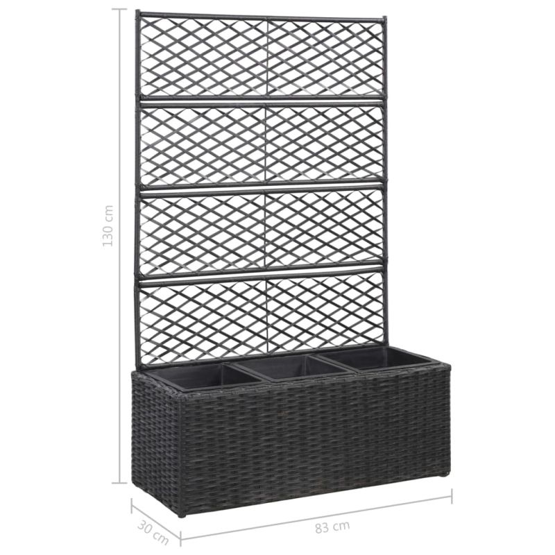 Пергола висока леха с 3 саксии, 83x30x130 см, полиратан, черна